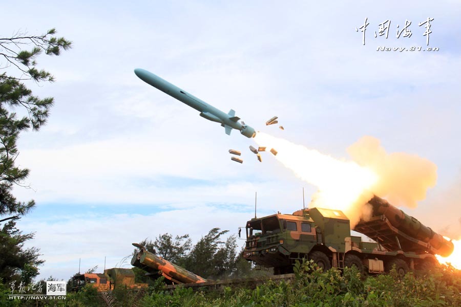 A mobile land-based missile regiment under the South China Sea Fleet of the Navy of the Chinese People's Liberation Army (PLA) conducted an actual-troop and live-ammunition drill to project military strength by ways of railway, highway and seaway. (Photo source: China Military Online)