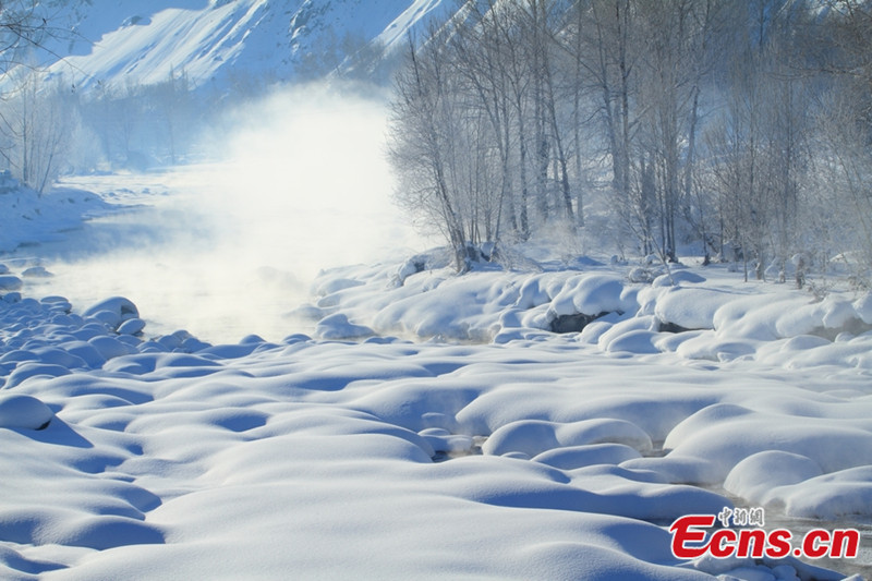 Photo shows the winter scenery of Kelan River at Altay County in Xinjiang Uygur Autonomous Region. [Photo / Huang Xiaoming]