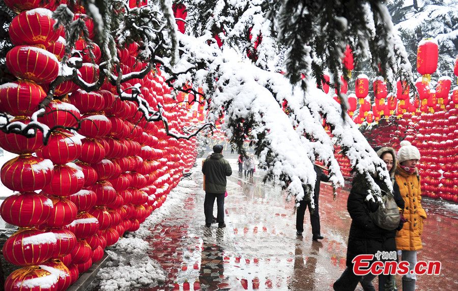 Photo taken on February 3 shows visitors at the Daming Lake decorated by 30,000 lanterns in Eastern Shandong Province. [Photo: CNS / Zhang Yong]