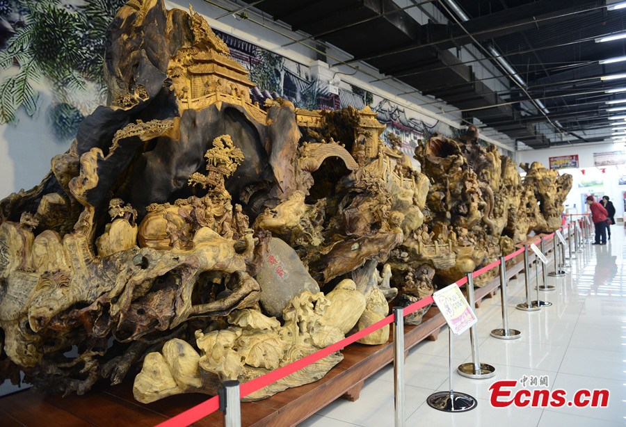 Photo taken on February 5 shows a 21.6-meter-long root carving, under the theme of Chinese historical masterpiece A Dream of Red Mansions, in Taiyuan of North China's Shanxi Province. [Photo: CNS / Wei Liang]