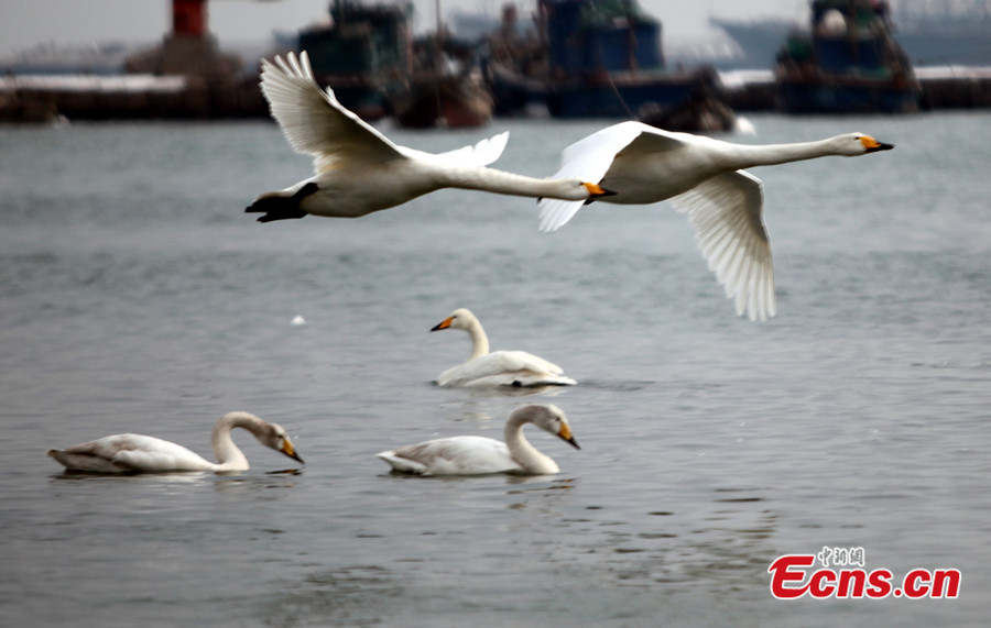 Swans spend winter in Rongcheng, E Shandong Province (1/7)