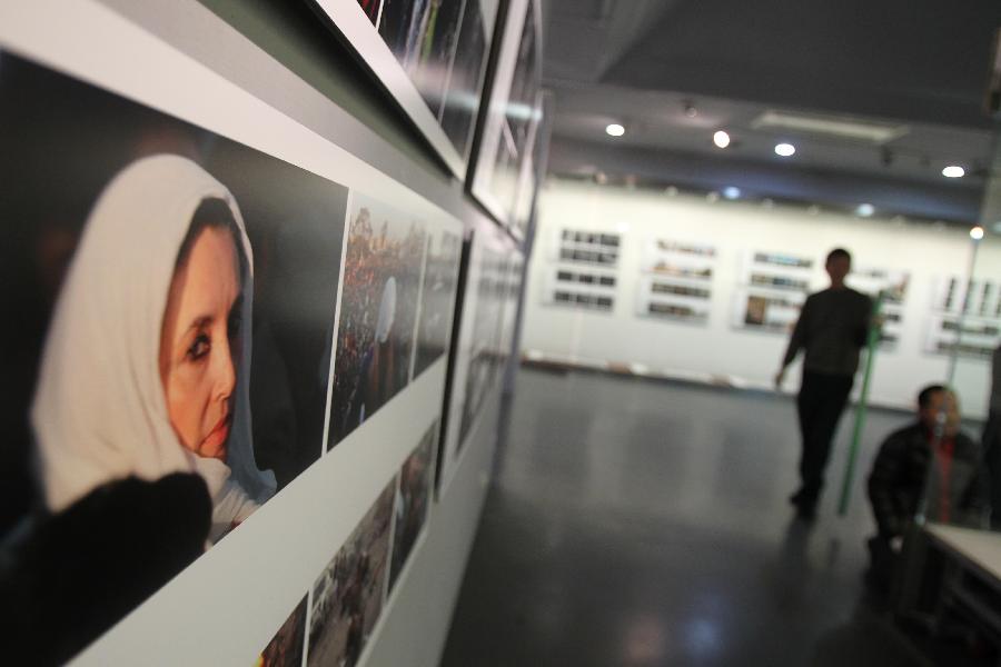 Staff arrange the exhibition at Nantong Museum in Nantong, east China's Jiangsu Province, Feb. 17, 2013. A 5-day exhibition displaying more than 160 award-winning photos of China International Press Photo Contest (CHIPP) will be held here since Feb. 18.(Xinhua/Xu Congjun)