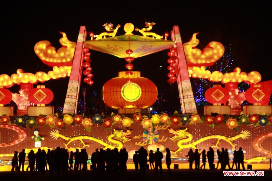 Tourists view lanterns at a park in Yangcheng County, north China's Shanxi Province, Feb. 18, 2013. Chinese traditional Lantern Festival this year falls on Feb. 24, 2013. (Xinhua/Chen Yuanzi)