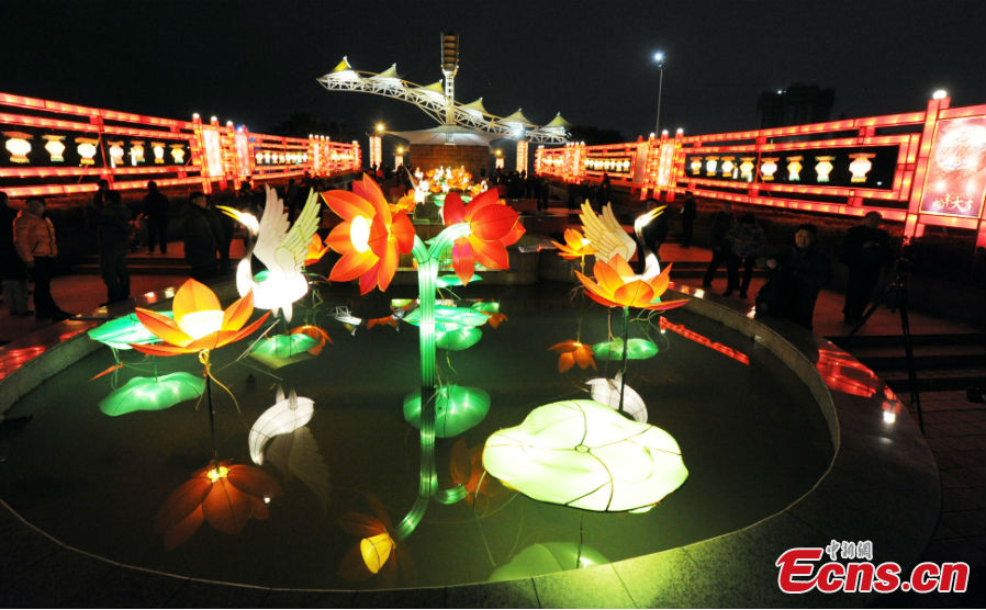 Lanterns shine at Minjiang Park in Fuzhou, Fujian Province, February 20, 2013. Lanterns of various shapes are hung in the city to celebrate the coming Lantern Festival, which falls on February 24 this year. [Photo: CNS/Liu Kegeng]