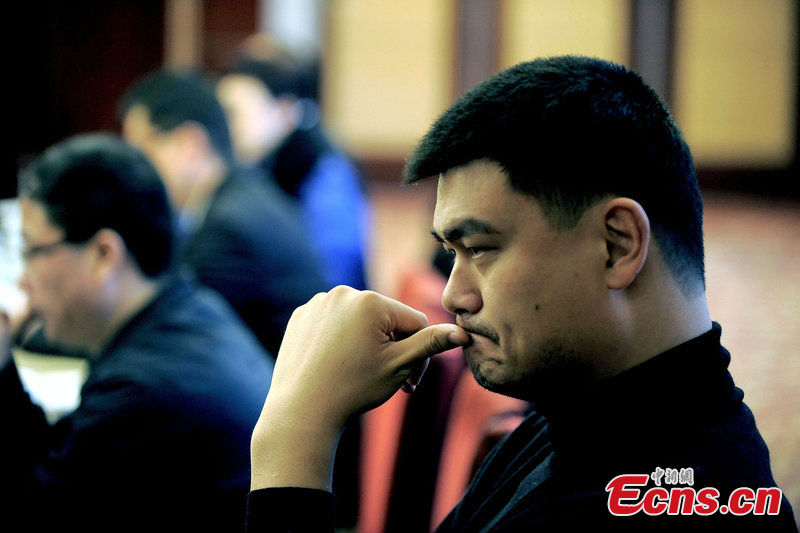 Yao Ming is seen in a meeting in Shanghai, February 27, 2013. The former NBA basketball star, who was elected as members of the 12th CPPCC, will leave for Beijing to attend the upcoming annual sessions of the National People's Congress (NPC), China's top legislature, and the Chinese People's Political Consultative Conference (CPPCC), the country's top political advisory body. The first session of the 12th National Committee of the CPPCC is to convene on March 3 and the first annual session of the 12th NPC will begin on March 5. [Photo: CFP]