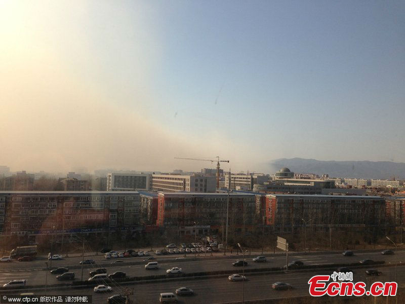 Buildings are enveloped in sandstorm in Beijing, February 27, 2013. [Photo: CFP]