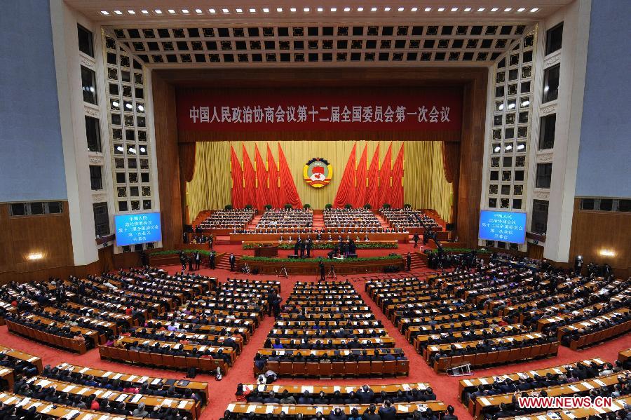 The first session of the 12th National Committee of the Chinese People's Political Consultative Conference (CPPCC) opens at the Great Hall of the People in Beijing, capital of China, March 3, 2013. (Xinhua/Rao Aimin)