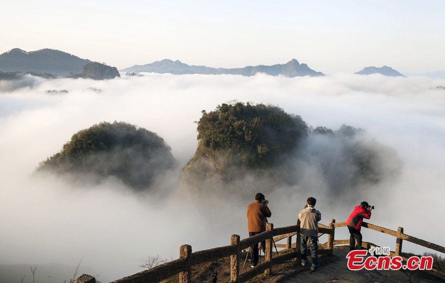 Photo taken on March 4 shows the sea of clouds at the Wuyi Mountain in Southeast China's Fujian Province. [Photo/Yi Fan]