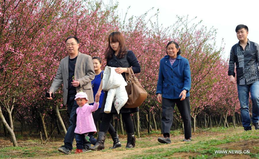 Visitors view cherry blossoms at Pingba Farm in Pingba County, southwest China's Guizhou Province, March 10, 2013. (Xinhua/Yang Ying)