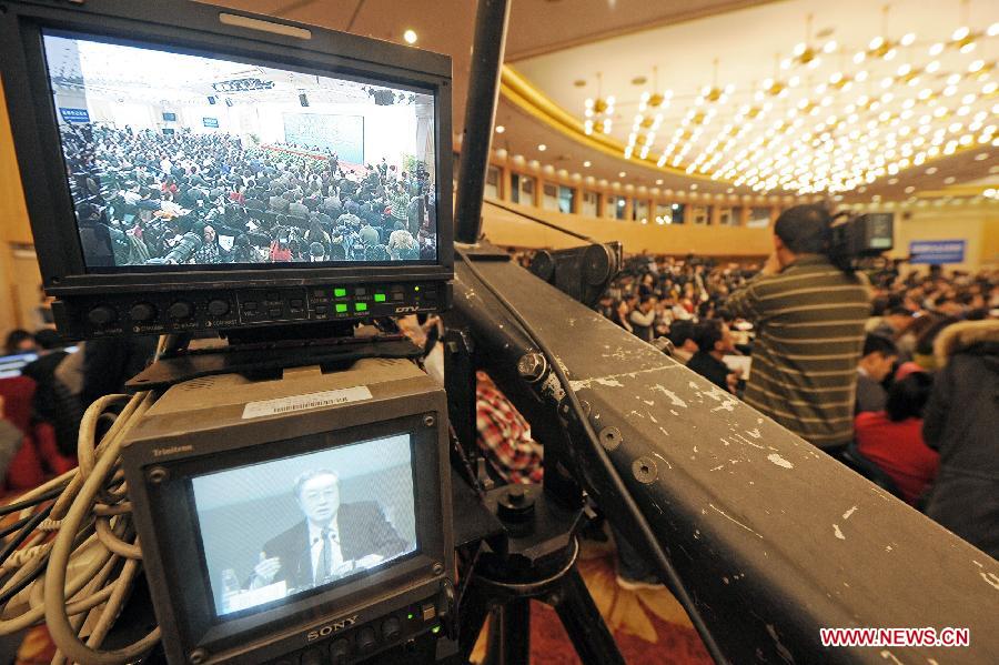 A news conference on China's currency policy and financial reform is held by the first session of the 12th National People's Congress (NPC) in Beijing, capital of China, March 13, 2013. Governor Zhou Xiaochuan and other officials from China's central bank answered questions at the press conference. (Xinhua/Qin Qing)