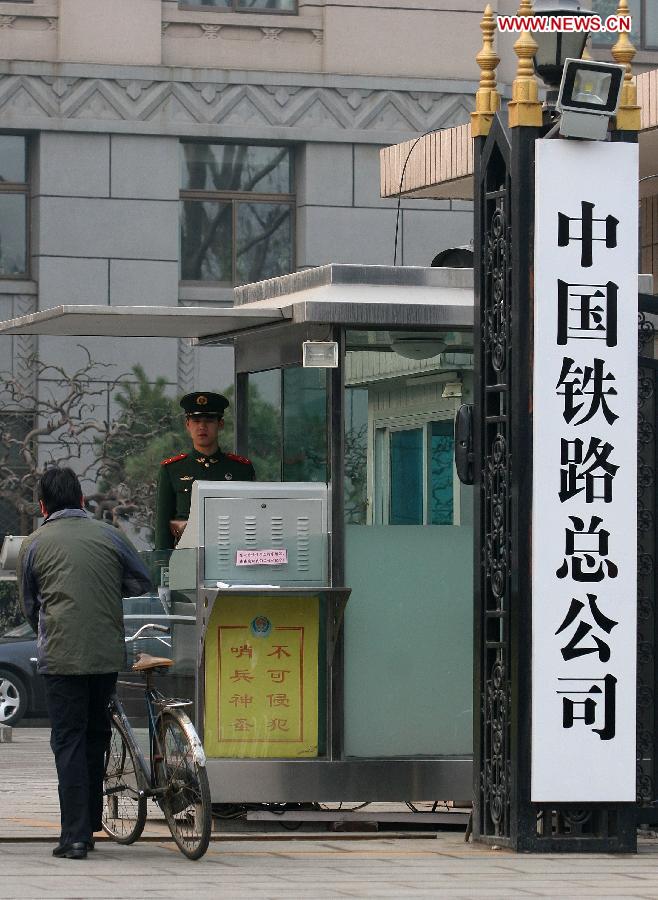 A man enters the China Railway Corporation, a new state-owned enterprise, in Beijing, capital of China, March 17, 2013. The Chinese government has approved the establishment of the China Railway Corporation to perform the business functions of the defunct Ministry of Railways (MOR) as part of the country's cabinet restructuring plan. (Xinhua)
