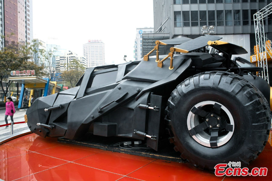A life-size model of the Batmobile, a vehicle created by Hollywood car customizer George Barris for the 1960s Batman TV series, is on display in Chengdu, the capital of Southwest China's Sichuan Province, March 19, 2013. [Photo: CNS/Zhang Lang]