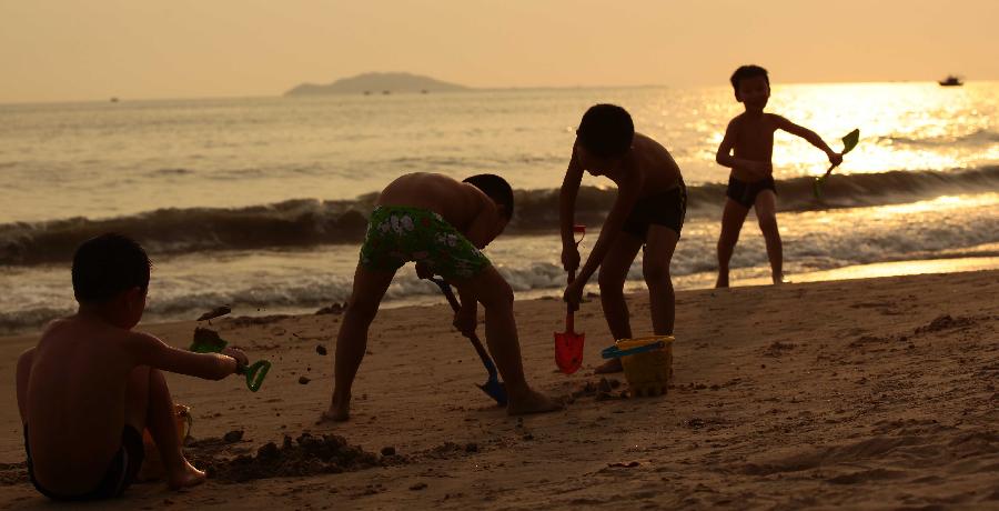 Children play at the seaside in Sanya, a tourist destination in south China's Hainan Province, March 20, 2013. (Xinhua/Chen Wenwu)