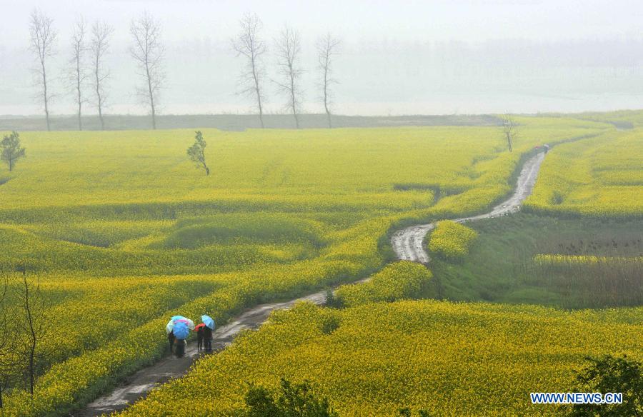 Visitors view rape flowers at Mianchuan Township of Jiujiang City, east China's Jiangxi Province, March 24, 2013. (Xinhua/Hu Guolin)