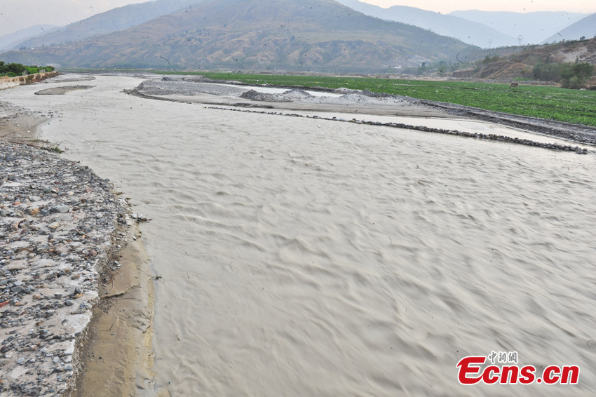 Photo taken on April 1, 2013 shows a polluted stream which has turned white in Dongchuan district of Kunming city, Yunnan province. On the benchland was white sludge, giving out odor of chemical reagent. A vegetable field nearby was covered by ashy soils. Locals began calling the river "milk river" after pollutants from a nearby underdrainage turned the water white.(CNS/Ren Dong)