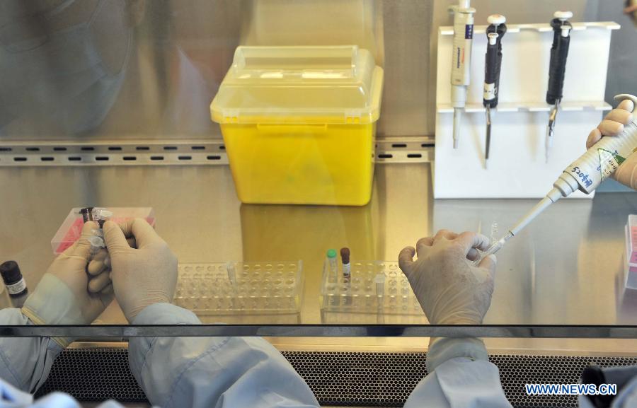Technicians deal with test reagents for H7N9 bird flu virus at the Beijing Center for Diseases Control and Prevention in Beijing, China, April 3, 2013. Test reagents for H7N9 virus have arrived in Beijing on April 2. And the city's diseases control and prevention centre along with 55 laboratories in its network are capable of testing the virus. (Xinhua/Li Wen)