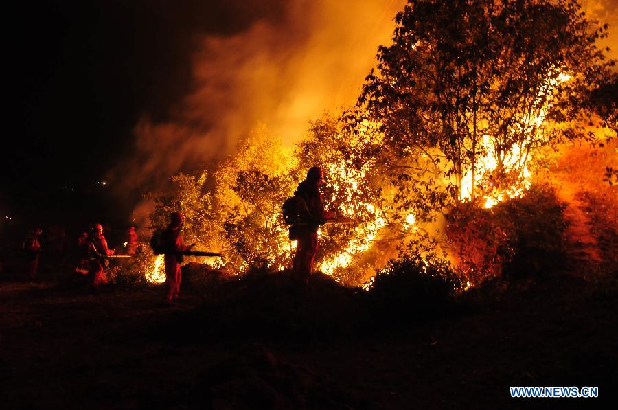 Forest policemen try to put out a forest fire in Anning, southwest China's Yunnan Province, April 9, 2013. The fire broke out around 1 p.m. (0500 GMT) in Anning City. Forest policemen and firefighters have been mobilized to quench the fire. (Xinhua/Zhong Yaojun)