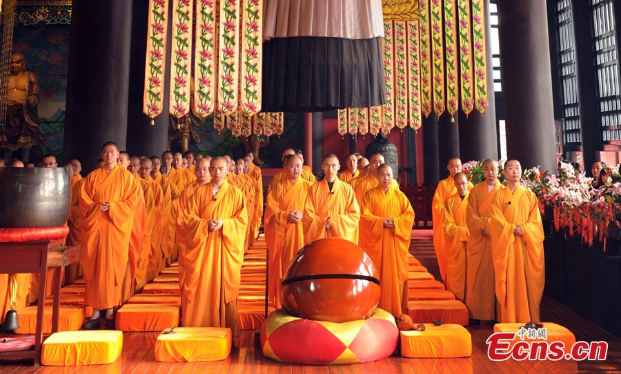 Students of the Buddhist Academy of Emei Mountain attend a ceremony in Emei Mountain, Southwest China's Sichuan Province. Established in 1927, the school, covering an area of more than 10,000 square meters presently, has courses mainly on Buddhism studying. [Photo: CNS/Liu Zhongjun]