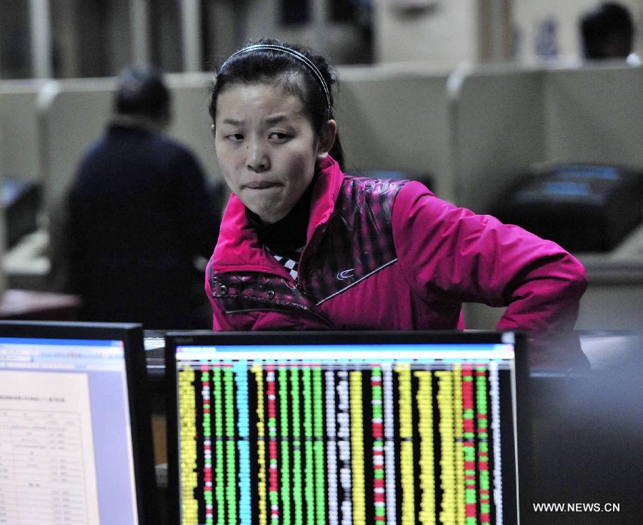 An investor is seen at a brokerage house in Jiujiang City, east China's Jiangxi Province, April 23, 2013. The benchmark Shanghai Composite Index shed 2.57 percent, or 57.63 points, to end at 2,184.54 on Tuesday, and the Shenzhen Component Index slumped 2.92 percent, or 264.48 points, to 8,793.13. (Xinhua/Hu Guolin)