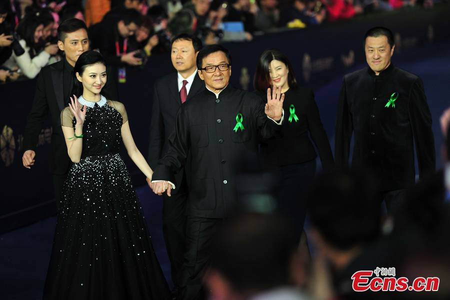 Jackie Chan (C) attends the closing ceremony of the 2013 Beijing International Film Festival in Beijing, capital of China, April 23, 2013. [CNS Photo/Jin Shuo]