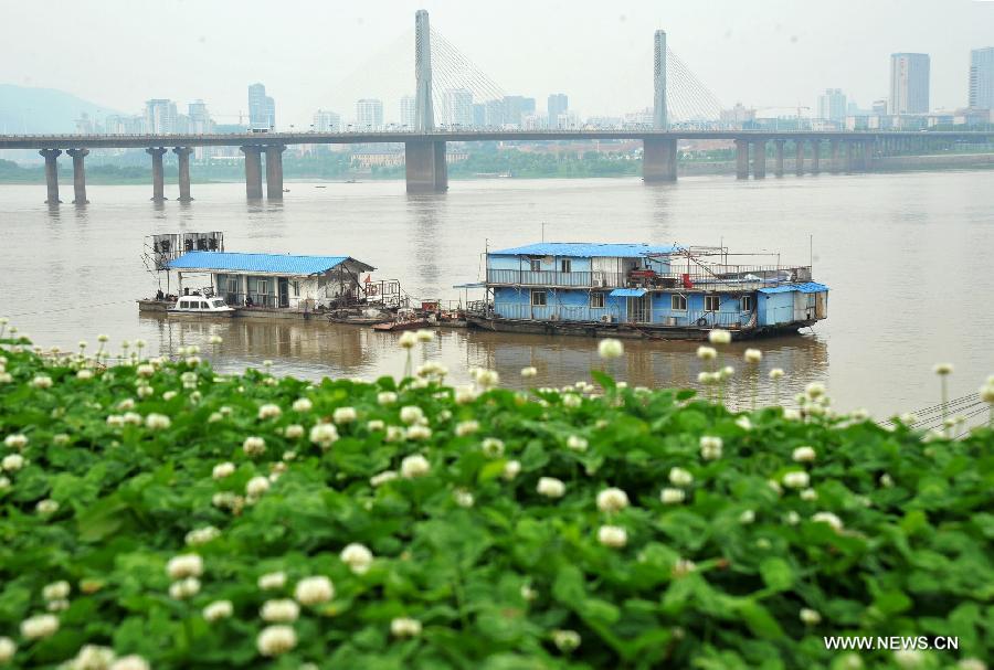 Photo taken on May 2, 2013 shows high water level under the Yinpenling Bridge on the Xiangjiang River in Changsha, capital of central China's Hunan Province. Heavy rain swept Hunan Province from April 29, pushing up the water level of the Xiangjiang River by 0.34 meters within one day to 29.89 meters by 8 a.m. of May 2. (Xinhua/Long Hongtao)