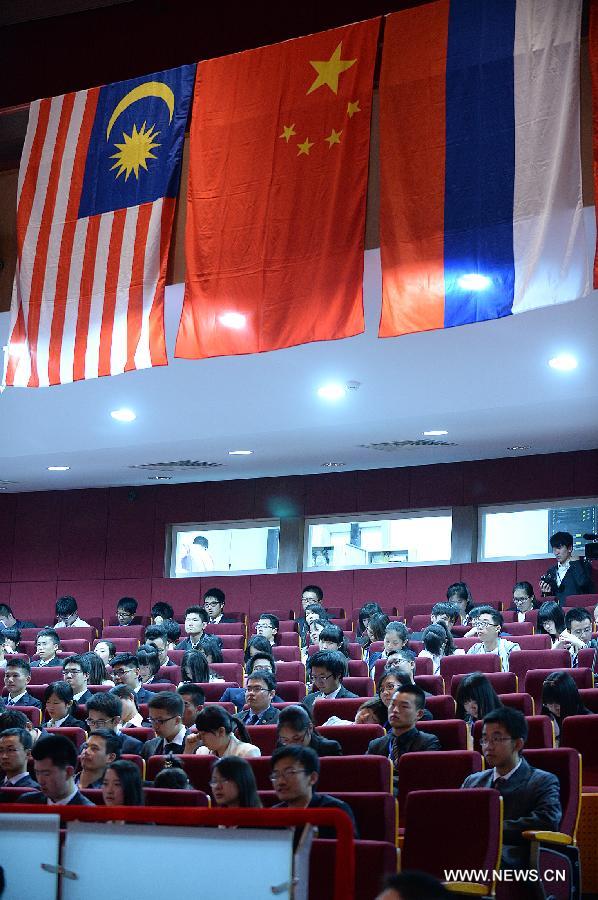 The Beijing Model United Nations 2013 (BMUN 2013), with the theme "a world that stands as one", is opened at China Foreign Affairs University in Beijing, capital of China, May 3, 2013. More than 300 delegates from over 50 universities and high schools will participate in the three-day model UN conference. (Xinhua/He Junchang)