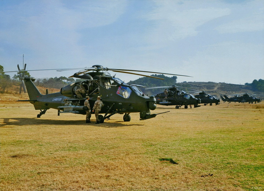 The WZ-10 armed helicopter is China's first dedicated armed attack helicopter, which had participated in several comprehensive military exercises. The WZ-10 armed helicopter possesses good flight performance and ultra-low-altitude maneuvering characteristics. It can conduct round-the-clock operation on battlefield.