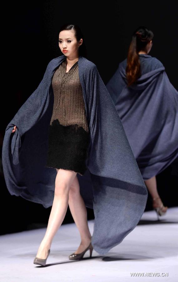 Models present creations of graduates from College of Textiles and Clothing of Qingdao University during the 2013 China (Qingdao) International Fashion Week in Qingdao, a coastal city in east China's Shandong Province, May 6, 2013. (Xinhua/Li Ziheng)