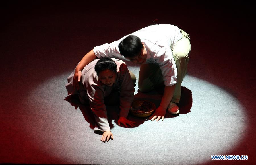 Actors from Shanxi Province perform during the contest for the 26th Plum Blossom Prize, in Chengdu, capital of southwest China's Sichuan Province, May 8, 2013. The contest for the 26th Plum Blossom Prize, the highest theatrical award in China, is held in April and May this year. The winners would be announced on May 20 in Chengdu. (Xinhua/Xue Yubin)