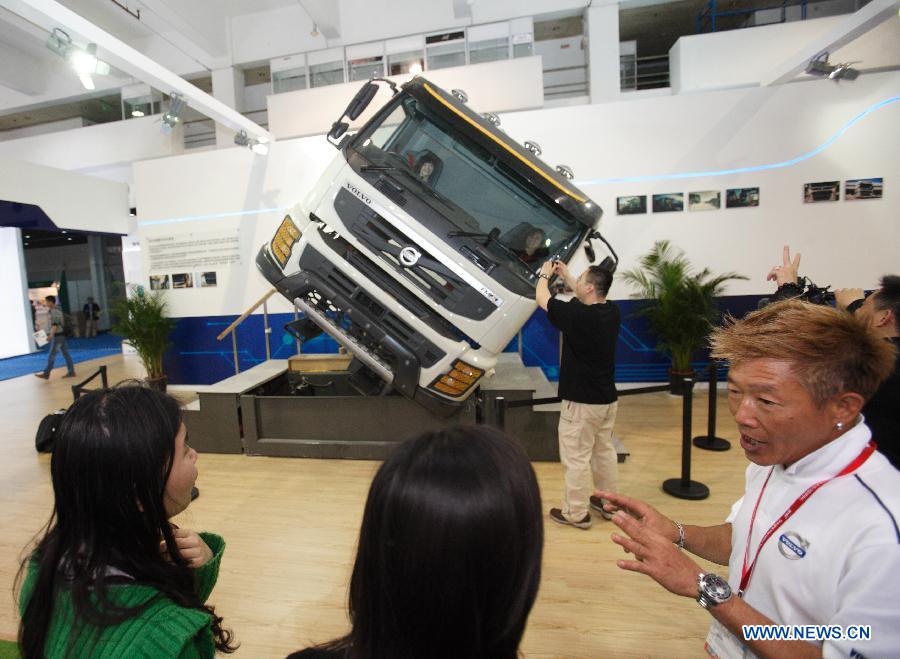 Visitors watch the product demonstration at the exhibition area of Volvo during the China (Shanghai) International Technology Fair in Shanghai, east China, May 8, 2013. (Xinhua/Jin Xin)
