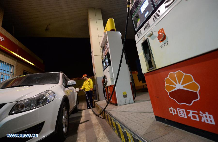 A gas station staff member refuels a car in Xi'an, capital of northwest China's Shaanxi Province, at the midnight on May 10, 2013. China slightly hiked gasoline and diesel prices starting May 10, the first increase since the fuel pricing scheme was reformed in March. The retail price of both gasoline and diesel was raised by 95 yuan (15.32 U.S. dollars) per tonne, the National Development and Reform Commission (NDRC), the country's top economic planner, said on May 9. The benchmark retail price of gasoline was increased by 0.07 yuan per liter and diesel by 0.08 yuan per liter. (Xinhua/Li Yibo)
