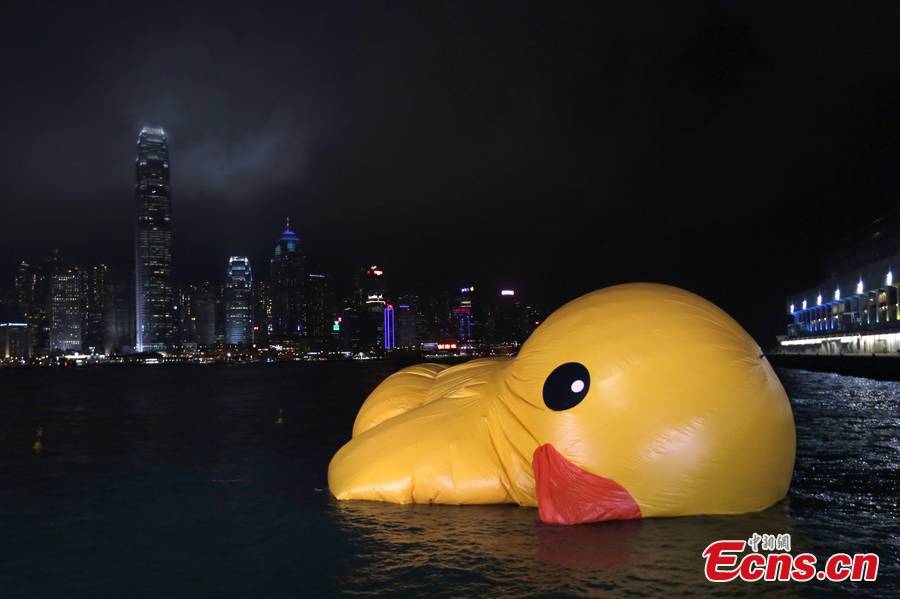 Giant rubber duck deflates in Hong Kong Harbor (1/2)