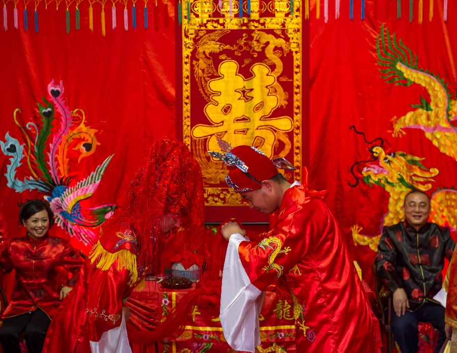 Traditional wedding ceremony held for mixed marriage in China's Chongqing(1/5)