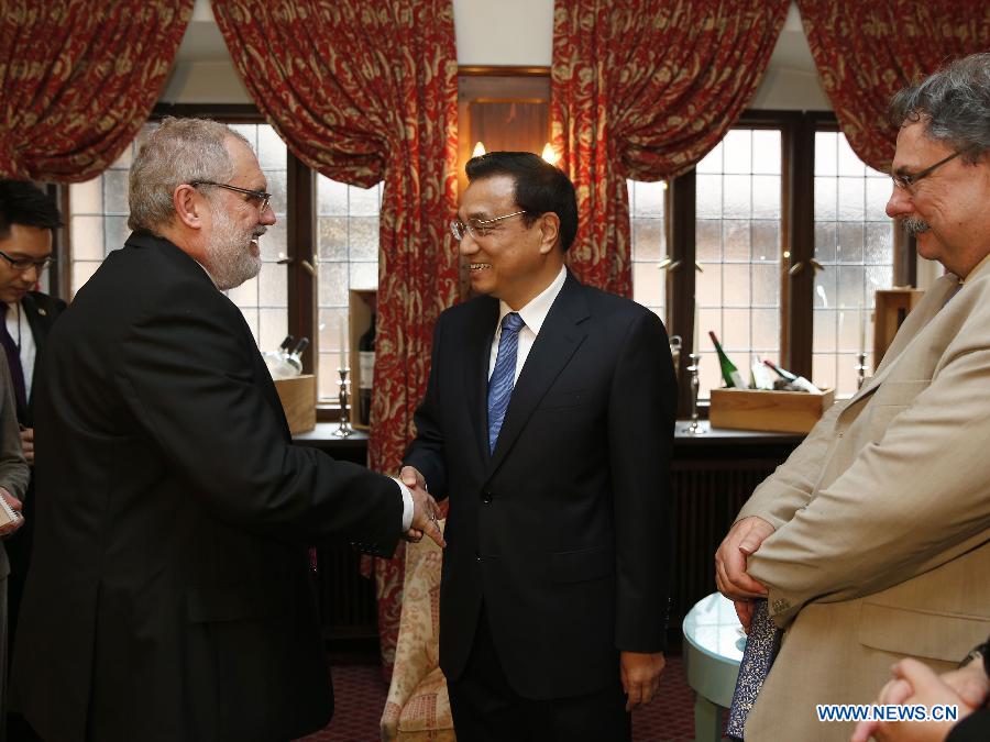 Chinese Premier Li Keqiang (C) meets with Rainer Dold (front L), president of the German-Chinese Friendship Association in German city Stuttgart, in Potsdam, capital of Germany's Brandenburg state, May 26, 2013. (Xinhua/Ju Peng)