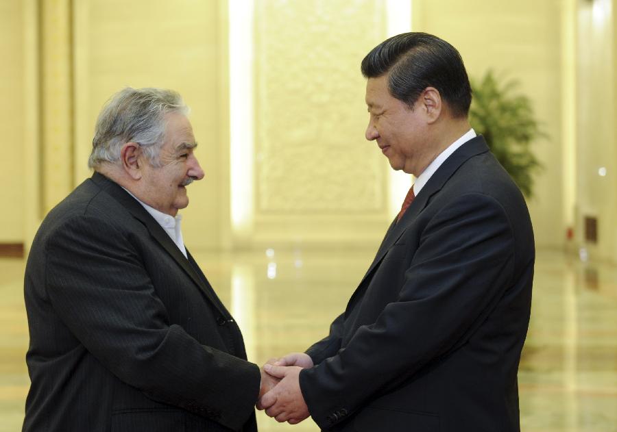 Chinese President Xi Jinping (R) holds talks with Uruguayan President Jose Mujica in Beijing, capital of China, May 27, 2013. (Xinhua/Zhang Duo)