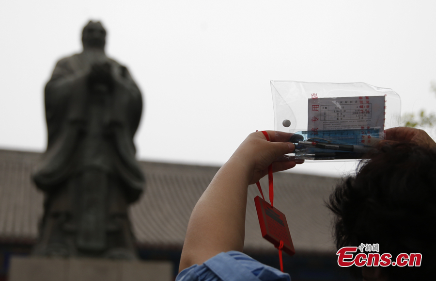 A mother prays for good luck before a statue of Confucius at the Confucius Temple in Beijing, capital of China, June 4, 2013. Many parents and students visited the temple to seize one last opportunity to pray for good luck in the "gaokao," or the National College Entrance Examination which takes place on June 7 and 8 this year. [Photo: CNS/Liu Guanguan]