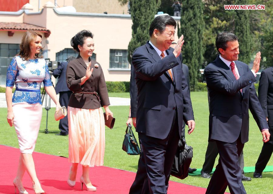 Chinese President Xi Jinping (Front) attends a welcoming ceremony held for him by Mexican President Enrique Pena Nieto (R) in Mexico City, capital of Mexico, June 4, 2013. (Xinhua/Yao Dawei)