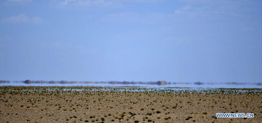 Photo taken on June 6, 2013 shows the mirage scene in Alashan Gobi area of north China's Inner Mongolia Autonomous Region. (Xinhua/Ren Junchuan)
