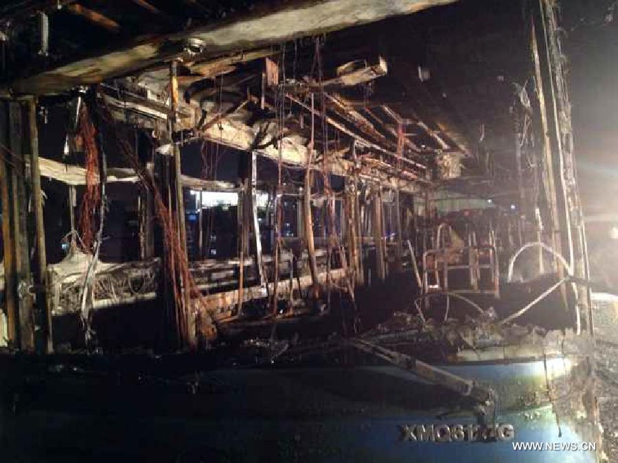 Photo taken by mobile phone on June 7, 2013 shows the debris of a bus on an elevated track in Xiamen, southeast China's Fujian Province. (Xinhua)