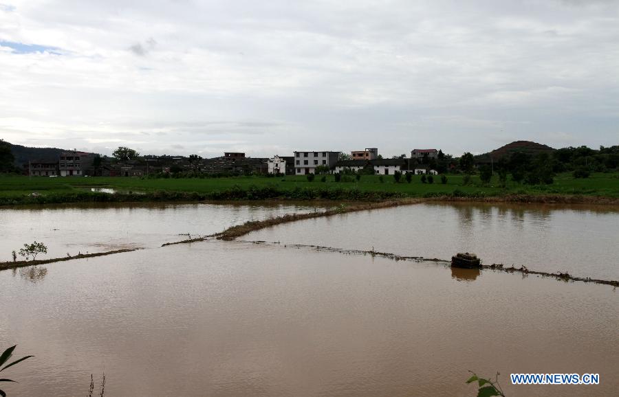 Photo taken on June 7, 2013 shows flooded paddy fields in Shixia Village, Jing'an County, east China's Jiangxi Province. A rainstorm hit the county since Thursday night, with the precipitation reaching to 186 mm. A total of 18,926 thousand people in Jing'an were affected by the rainfall, with 705 people being displaced to safe places. (Xinhua/Xu Zhongting)