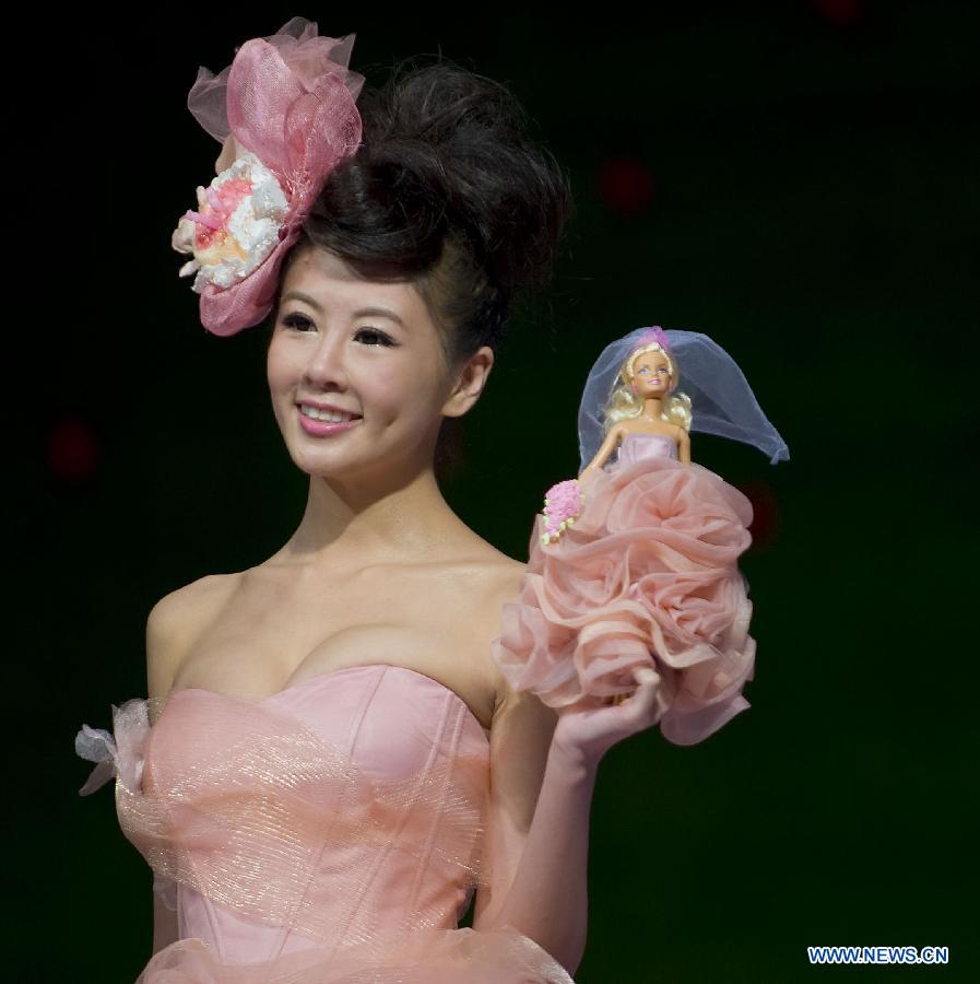 A model presents a creation during a wedding dress and evening gown show at the 71st Summer Wedding Service Banquet Expo & Beauty Fiesta 2013 in Hong Kong, south China, June 8, 2013. (Xinhua/Zhao Yusi)