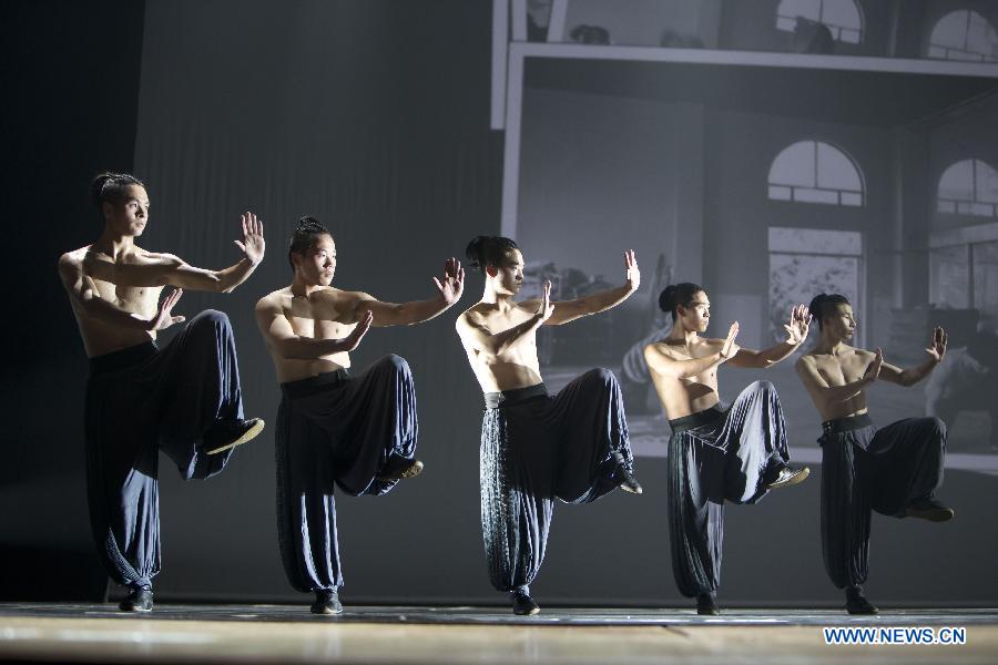 Dancers from Dragon Style Kung Fu Performance Troupe perform in the Kungfu Dance "The Door" at the Peking University Hall in Beijing, capital of China, June 10, 2013. (Xinhua/Zhao Bing)