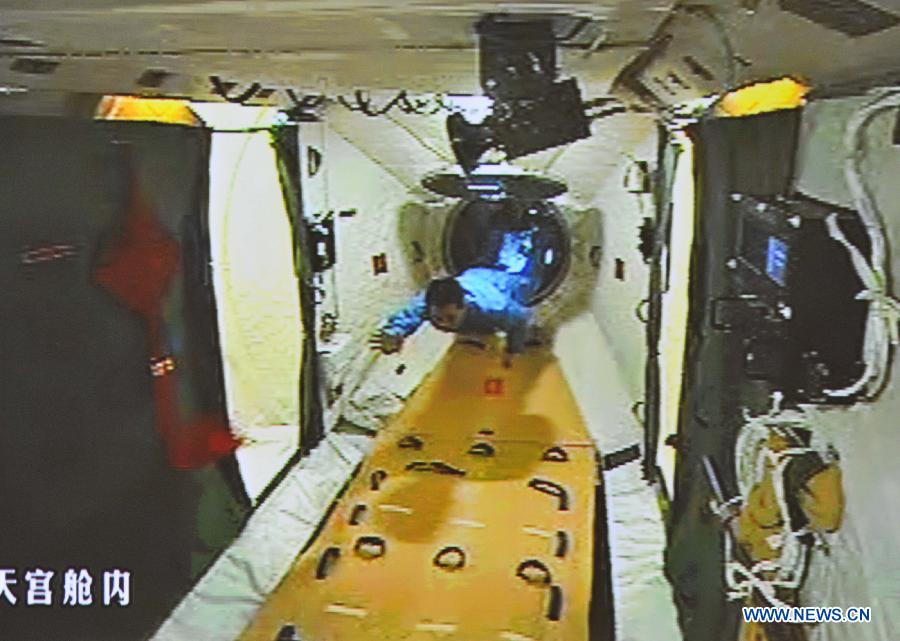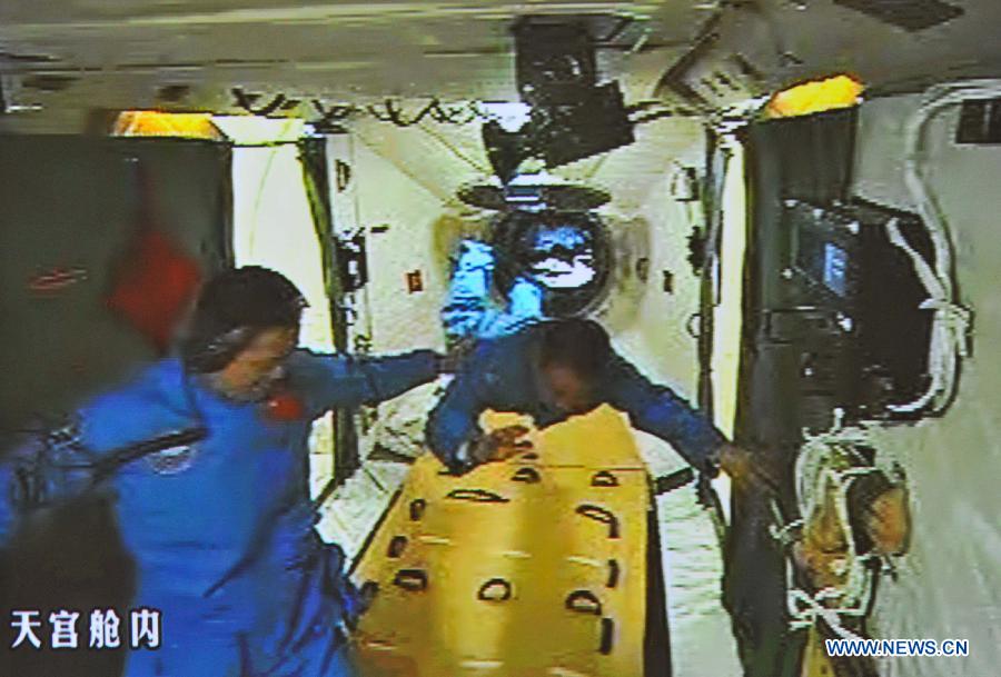 Astronauts of Shenzhou-10 spacecraft enter Tiangong-1 space module (1/5)