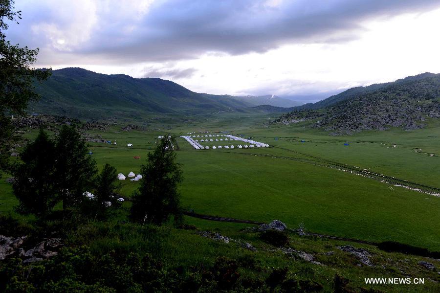 Photo taken on June 11, 2013 shows the scenery of the Argonne Ghet grassland in Burqin County, northwest China's Xinjiang Uygur Autonomous Region, June 11, 2013. (Xinhua/Sadat)
