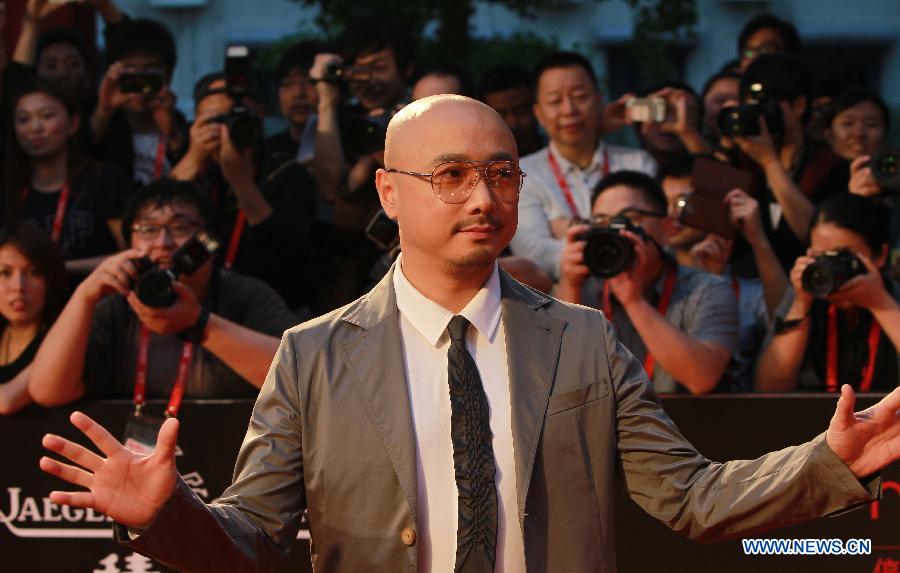 Director and actor Xu Zheng greets audience while arriving on the red carpet for the opening ceremony of the 16th Shanghai International Film Festival in Shanghai, east China, June 15, 2013. (Xinhua/Pei Xin)