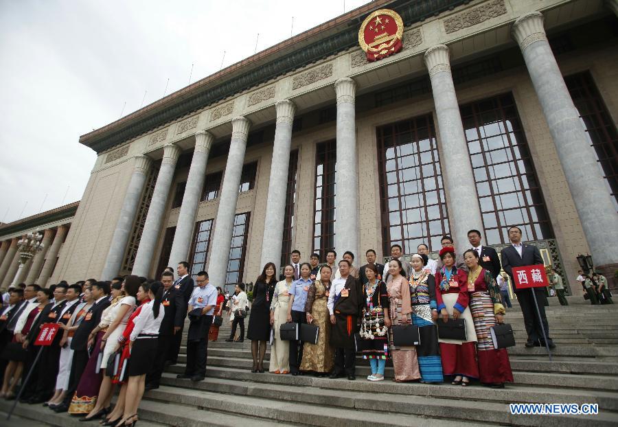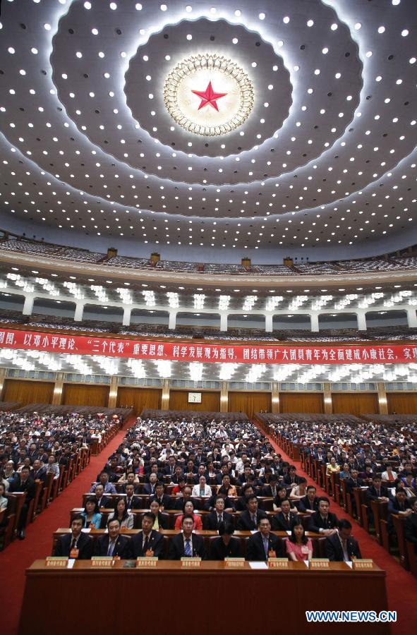 Delegates pose for photos after the closing of the 17th national congress of the Communist Youth League of China (CYLC) at the Great Hall of the People in Beijing, capital of China, June 20, 2013. (Xinhua/Wang Shen)