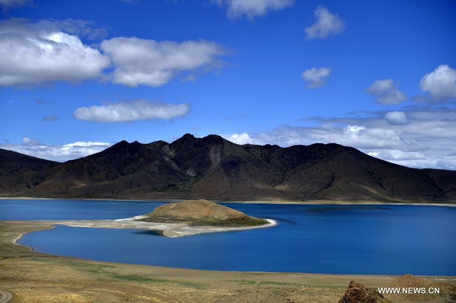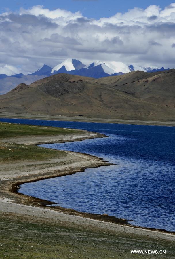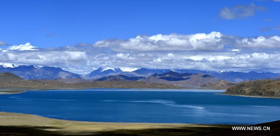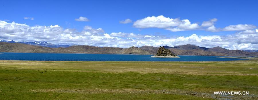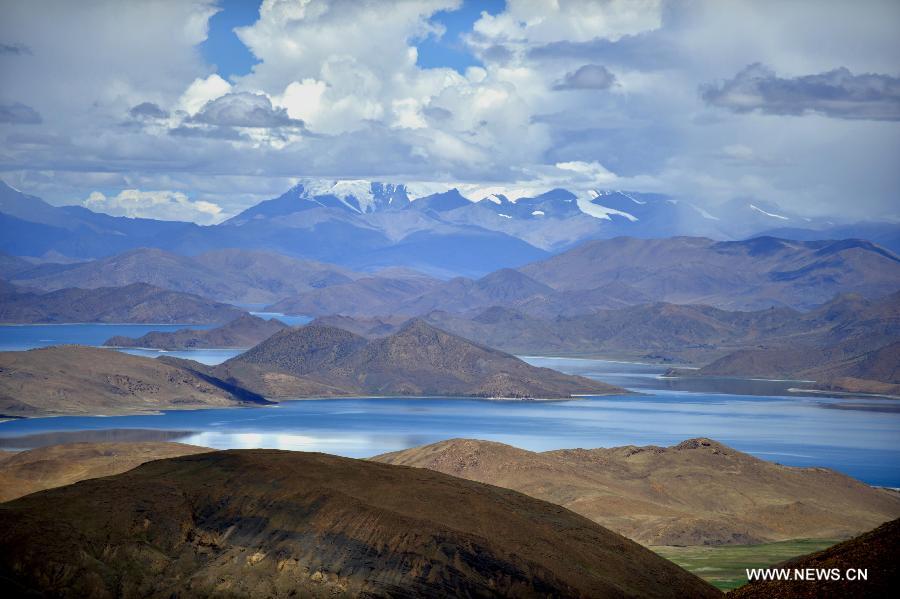 Photo taken on June 20, 2013 shows the scenery of Yamdrok Lake in Nagarze County of Shannan Prefecture, southwest China's Tibet Autonomous Region. Yamdrok Lake, about 100 kilometers south of the region's capital Lhasa, is surrounded by snowcapped mountains. (Xinhua/Purbu Zhaxi)