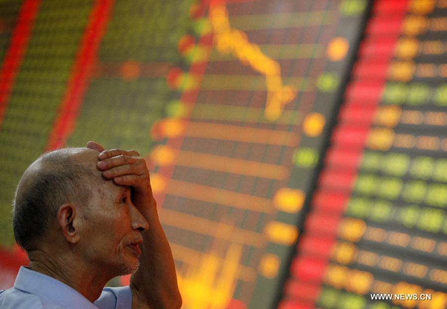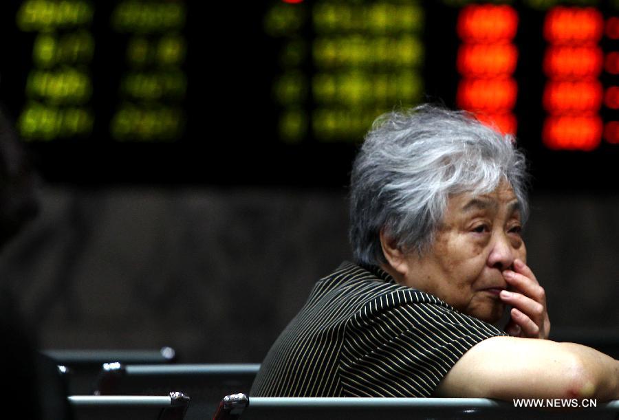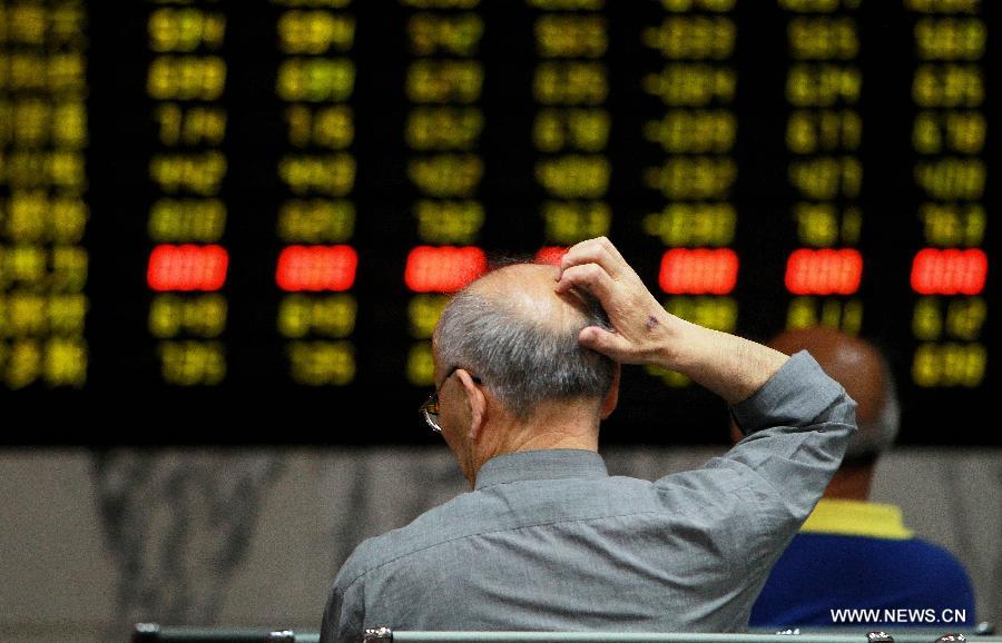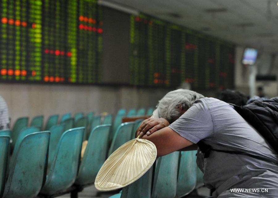 Investors are seen at a trading hall of a securities firm in Hangzhou, capital of east China's Zhejiang Province, June 24, 2013. Chinese shares plunged on Monday and closed below a key psychological mark over worries about the liquidity crunch in the financial system and subdued strength in the world's second largest economy. The benchmark Shanghai Composite Index tumbled 5.3 percent to end at 1,963.24, the lowest point in nearly seven months, while the Shenzhen Component Index pummeled 6.73 percent to 7,588.52. (Xinhua/Ju Huanzong)
