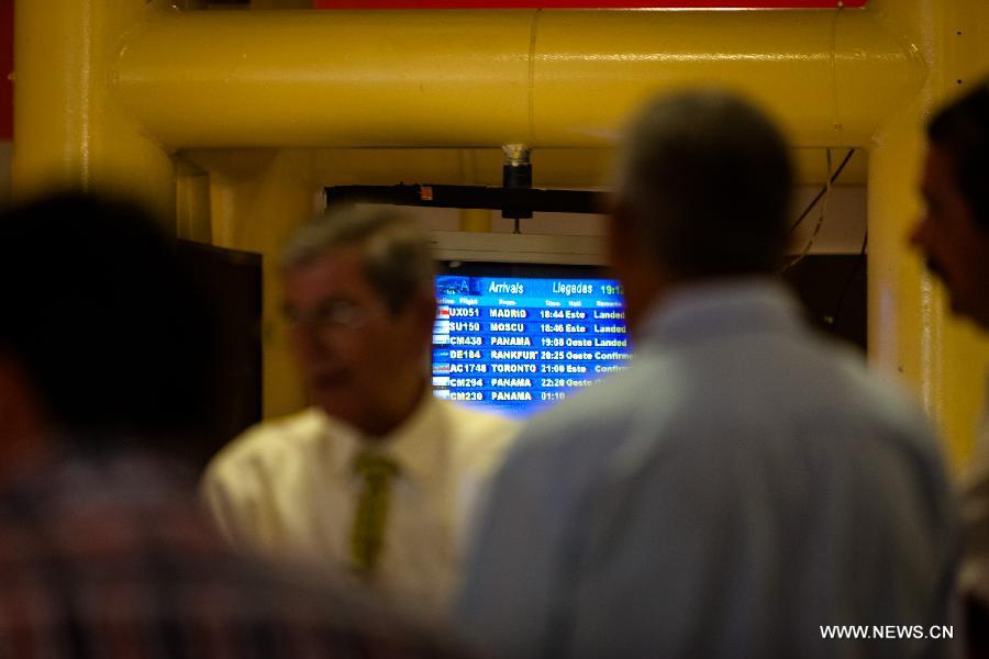 The landing information of the flight SU150 from Moscow, Russia, is shown on a screen at the Jose Marti airport in Havana, Cuba, June 24, 2013. Former U.S. intelligence contractor Edward Snowden did not show up at the flight. (Xinhua/Liu Bin)