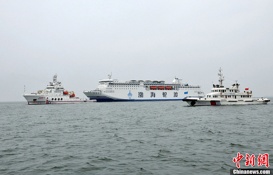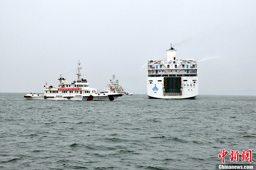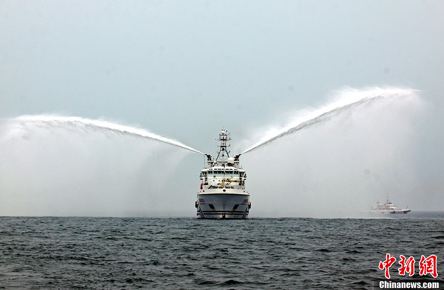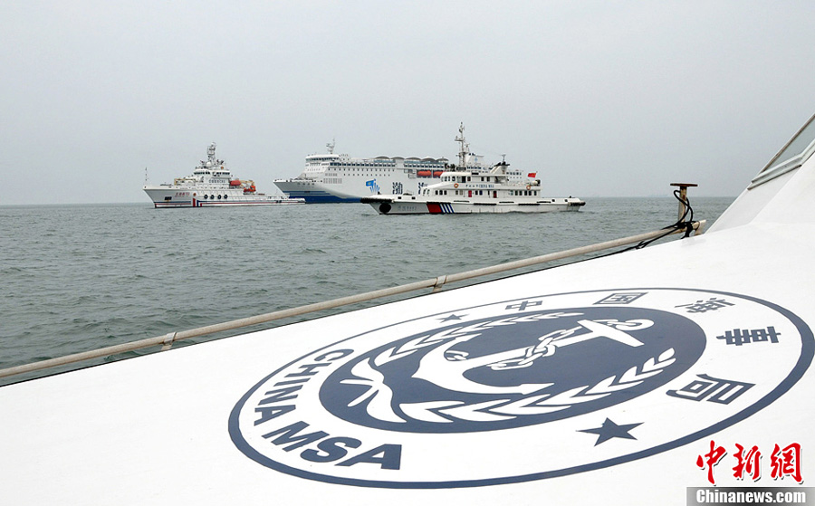 "Beihaijiu 113," a rescue ship, takes part in a search and rescue exercise held in Bohai Bay near Yantai, East China's Shandong Province, June 25, 2013. Four vessels, including one ro-ro passenger ship, one rescue ship and two patrol ships, joined the exercise on Tuesday. [Photo: CNS/Hao Guangliang]